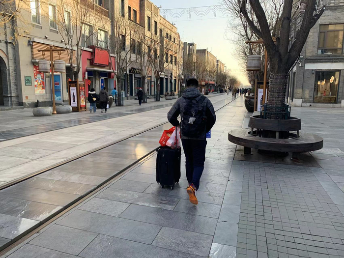 兔年春节临近,不少人在离京返乡前,都会买点儿特产带回老家送给亲友。记者在前门步行街看到,很多人直接拖拽着行李箱来买伴手礼,“兔墩墩”和兔儿爷成为礼物中的爆款。