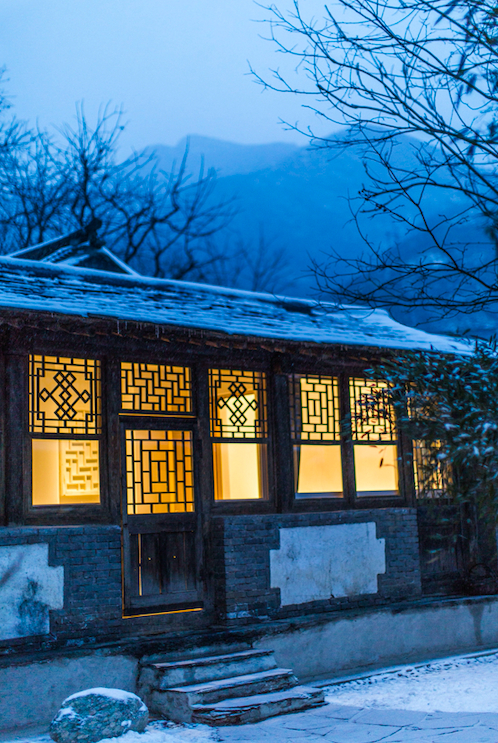 位于房山黄山店村的“姥姥家”是一个合院式乡居民宿,院落依山,树木参天,保存百年古宅的外墙结构,尤为古朴。