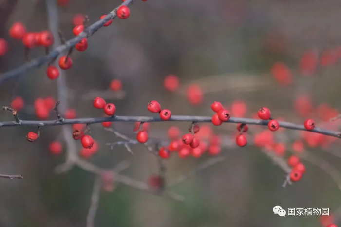 冬日里,鲜艳的色彩总是会让人眼前一亮。看,许多植物的枝头还挂着宿存的果实。这些果实或种子就像在挥舞着双手,用它们鲜艳的颜色向鸟类发出信号,吸引它们来食用,并借此帮助自己来传播种子。
