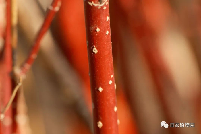 山茱萸科山茱萸属落叶灌木,枝条多近直立,光滑无毛,火红的枝条具有很高的观赏价值,老枝上有圆形皮孔及环形叶痕。