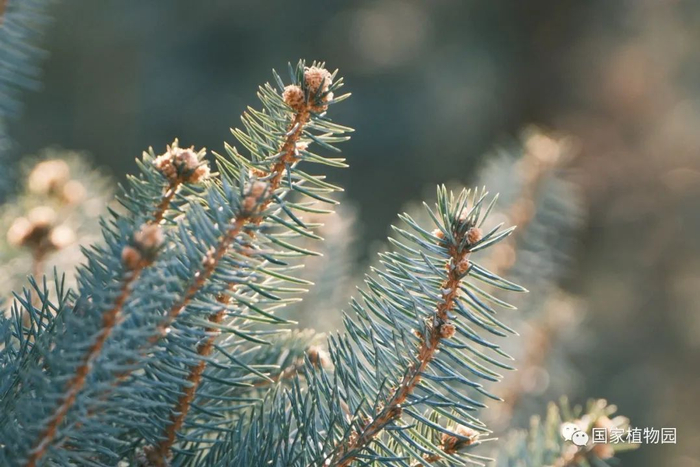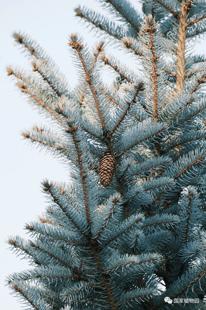 松科云杉属常绿乔木,原产于北美。树冠呈圆锥形、尖塔形或金字塔形,潇洒自然,展示出纤细柔美的姿态;针叶蓝绿色或蓝白色,先端尖锐,自带“高冷”的氛围,似从雪山中走来。