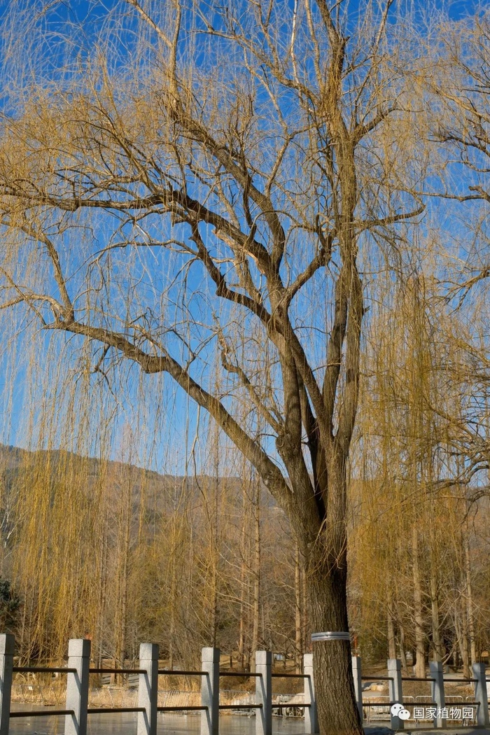 杨柳科柳属乔木,为旱柳的变种。绦柳的小枝黄色,叶为披针形,在湛蓝天空的映衬下,金色的枝条随着风微微摆动,轻盈而优雅。