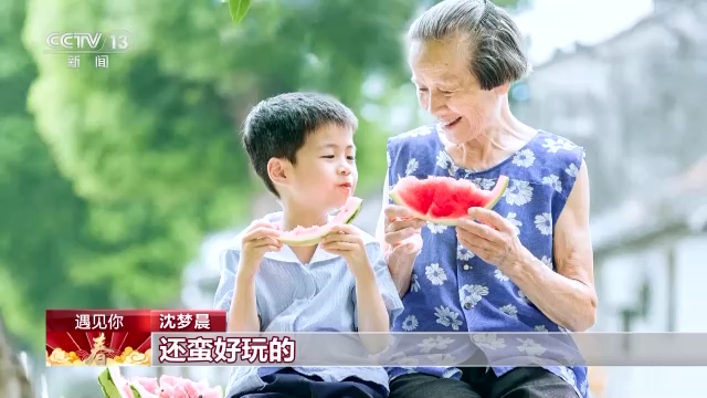 沈梦晨:我觉得这张照片最好玩。因为他们两个人吃瓜,都彼此看对方的瓜,还蛮好玩的。隆重介绍一下外婆身上这件衣服,这件衣服最早是我姐姐小时候穿的,后来给了我穿,再后来就是我外婆她就不舍得扔掉,就改成了褂子马甲自己穿了。现在看到,还能想起那天的天气吗,那天发生好玩的事情,这种感觉就是拍照的意义,就是你哪怕过了很长一段时间,你还能想起当天的开心的时光。