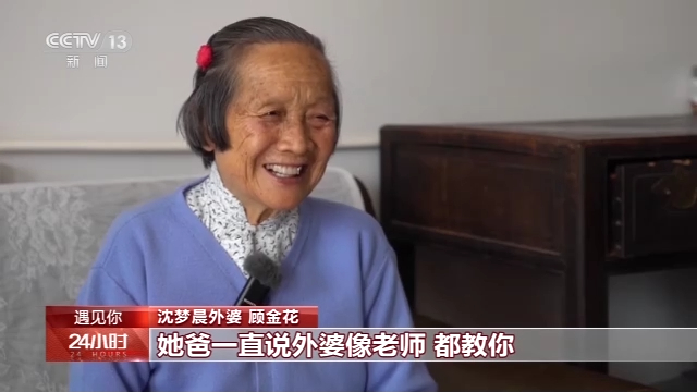 沈梦晨外婆 顾金花:我和沈梦晨感情好的,小时候教她游泳、教她写字,我都关心的。她爸一直说外婆像老师,都教你。