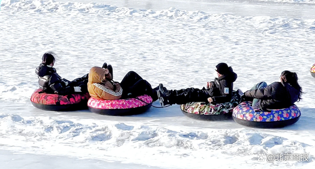 结了冰的人工湖成了大家伙的冰雪游乐园。