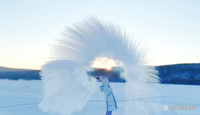 在这座零下二十七摄氏度的东北小城,足够体验一把网络上爆火的泼水成冰,风从脸颊两边呼啸而过冻得生疼。