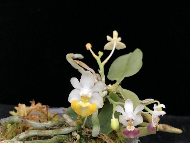 洛比蝴蝶兰黄化型(左)和帕氏蝴蝶兰(右)