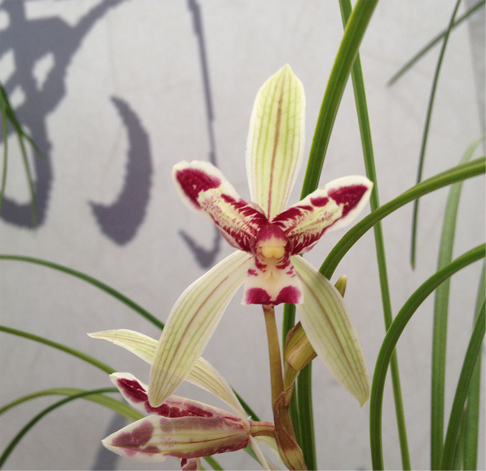 [玉兔]莲瓣兰(Cymbidium tortisepalum‘Yu Tu’),又名[玉兔彩蝶]。兰科兰属植物,原产云南省滇西三江流域峡谷密林中。1990年在云南省滇西与西藏交界处的维西县由山民采得,后流传至昆明,由兰友选育。