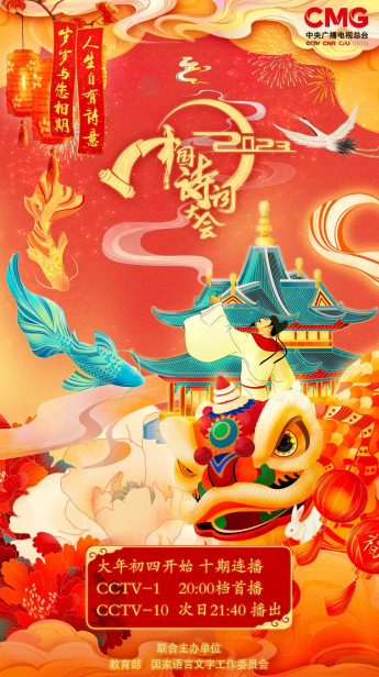 《2023中国诗词大会》大年初四开始十期连播,CCTV-1综合频道20:00首播,CCTV-10科教频道次日21:40播出,新的一年,再邀观众同赴诗词之约!