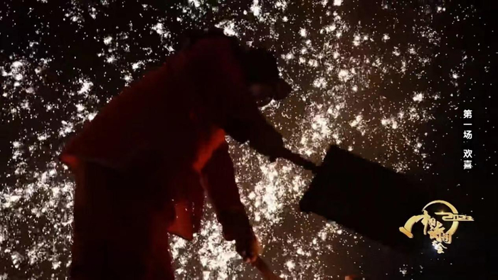 “民间手艺人”紧随其后,也为观众带来了惊喜。“炉火照天地,红星乱紫烟”,“打铁花”作为一种大型民间传统技艺,千余度高温的铁汁击打到棚上,形成十几米高的铁花,场景蔚为壮观,呈现出火树银花不夜天的美丽画卷。“云想衣裳花想容 春风拂槛露华浓”,在翻糖蛋糕师的手下,一位身着霓裳羽衣的女子翩然现身于观众眼前,生活中常见的蛋糕,经过手艺人的匠心与巧思,迸发出独特的文化韵味。