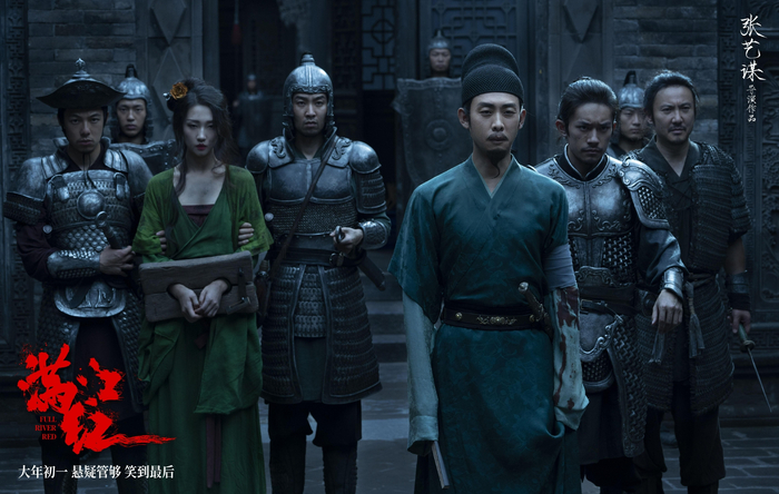 电影《满江红》中,张弛饰演孙钧的左卫陈亮。(左起:黄炎、易烊千玺、张弛)
