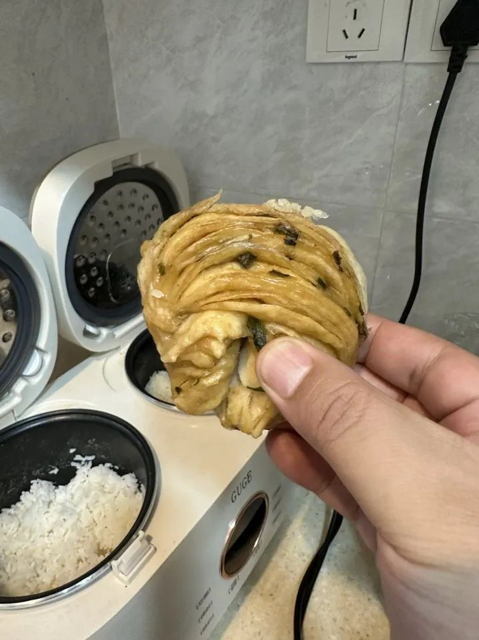 最后几个花卷,从冰箱回锅来来回回加热了16回。我爸这一咬太硬了,根本咬不动,我妈把这个花卷儿打包了,准备上飞机再吃的。