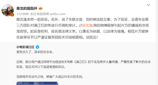@沈逸表示:我的微博能够引起片方的重视有些受宠若惊。起诉是权利,应诉是法律义务。以事实为依据,以法律为准绳。相信片方能够在庭审环节以严谨证据来回应关切说明真相。法院见!