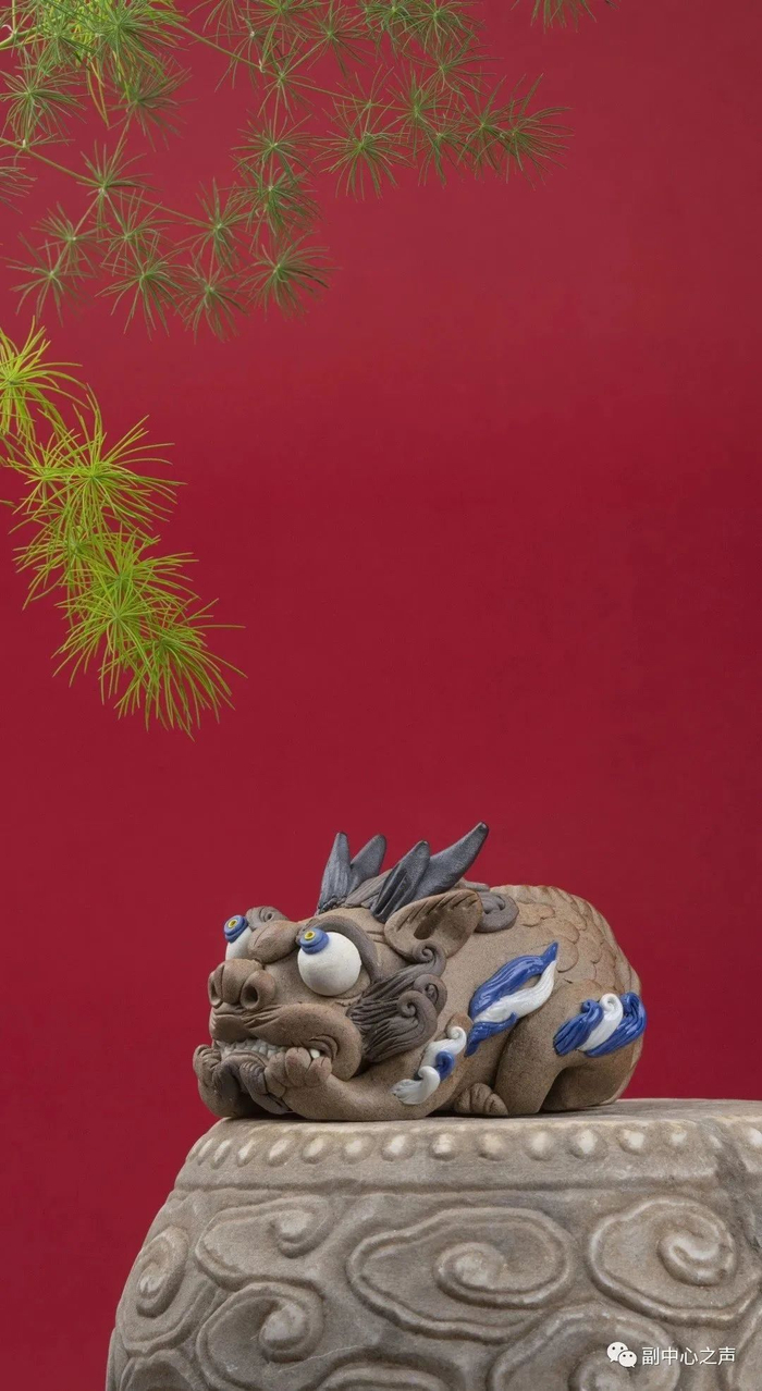 中国制陶技艺历史悠久,仰韶文化的彩陶工艺达到了相当完美的程度,是中国原始彩陶工艺的典范。平安兽又称避水兽、镇水兽,在大运河沿岸乃至故宫、天坛建筑中都能看到它的身影。传说是龙的儿子,具有镇水法力,也有祈福平安的寓意。“我们将传统制陶工艺与国家级非遗‘中国景德镇手工制瓷技艺’相结合,创作出中国传统的捏陶工艺加陶瓷艺术创新的大运河平安兽香插摆件系列产品。”冯建革说。平安兽系列产品有“萌趴式”“酷立式”“招财进宝”等形态,通体棕色,捏陶工艺古典,蓝白釉水纹时尚,使平安兽作品既有内涵又有颜值。