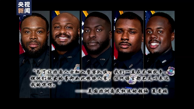 值得一提的是,孟菲斯市拥有62.8万人口,其中约64%都是非裔美国人。为了尽量与人口比例匹配,孟菲斯市警察局近2000名警员中58%都是非裔美国人,包括现任警察局长塞雷琳·戴维斯。然而,令人唏嘘的是,这一次对尼科尔斯施暴的5名警察都是非洲裔。