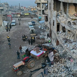 搜索和救援的行动也在艰苦的条件下艰难推进。雨雪交加的天气、接近零度的低温和数百次的余震,加剧了建筑物的损毁程度和救援的难度。不论是在政府还是反对派控制的地区,救援团体都缺乏清除废墟的重型器械。在飞地,最大的救援力量叙利亚民防组织有3000人投入救援。该组织表示,由于资源不足,志愿者多数时候只能徒手挖掘。为数不多的挖掘机在不同城镇流转,但对于数不胜数的求助来说,无异于杯水车薪。