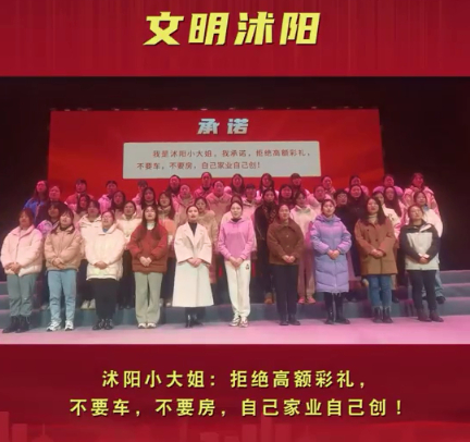 江苏沭阳近日也倡议女青年拒绝高价彩礼。