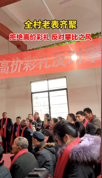 此前1月17日,遂川县还有一个地方也是全村齐聚,拒绝高价彩礼,反对攀比之风。