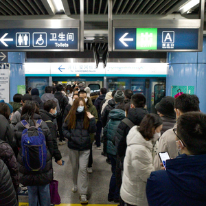 早上8点,在地铁4号线菜市口站,记者看到,由南往北的列车几乎每一趟都是满员运行,而与此同时,站台上排队等候的乘客数量更多,几乎已排到了对面方向的等候区,车站工作人员在站台上不断巡视,指引乘客前往人相对少的区域等候。早上8点20分,地铁7号线磁器口站,两趟来自不同方向的列车同时进站,车门开启的一瞬间,准备换乘5号线的乘客就在电梯处排起了长队,部分赶时间的乘客则快速沿着楼梯跑步前进。