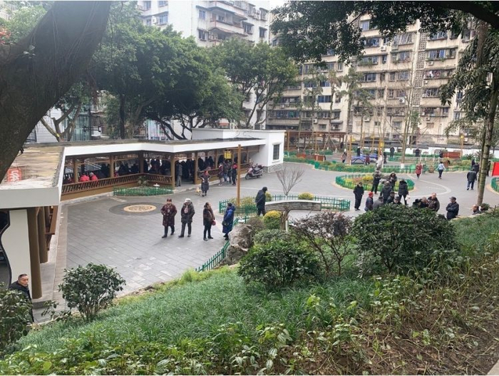 在渝北区双龙湖街道飞湖路社区,坐落于此的益寿园,每天都吸引着众多居民前来游玩休闲,尤其深受老年人的喜爱。