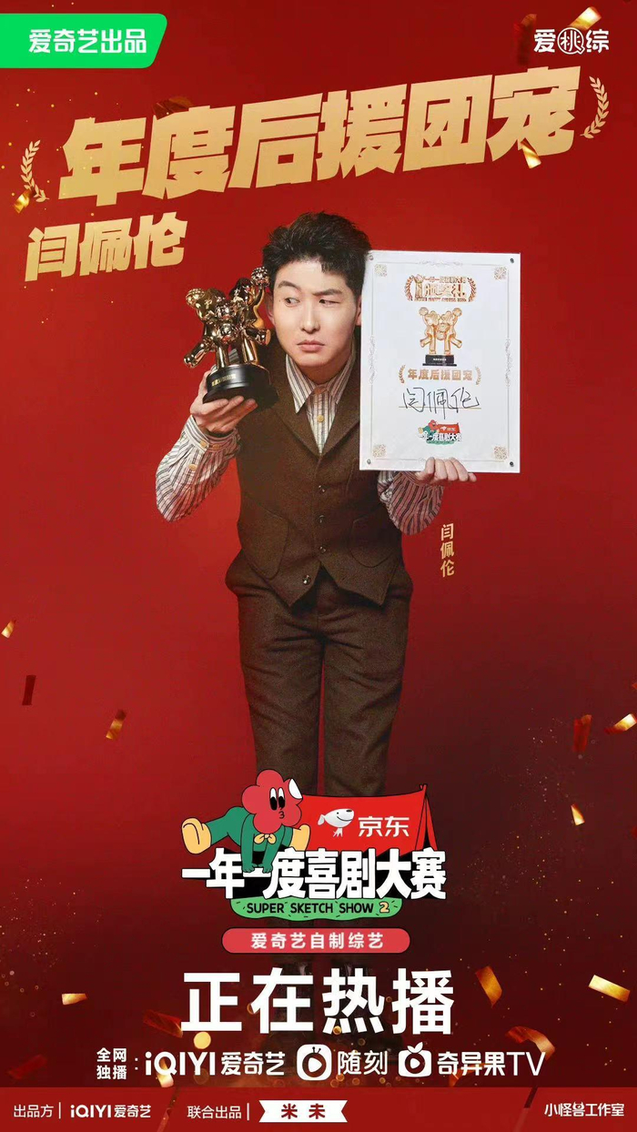 《一年一度喜剧大赛2》收官时,闫佩伦获得了一个特殊奖项——“年度后援团宠”。虽然作为参赛者,他很早就被淘汰了,但在后续的节目中,他助演了14个节目,甚至有网友戏称,这简直是“一年一度闫佩伦大赛”。