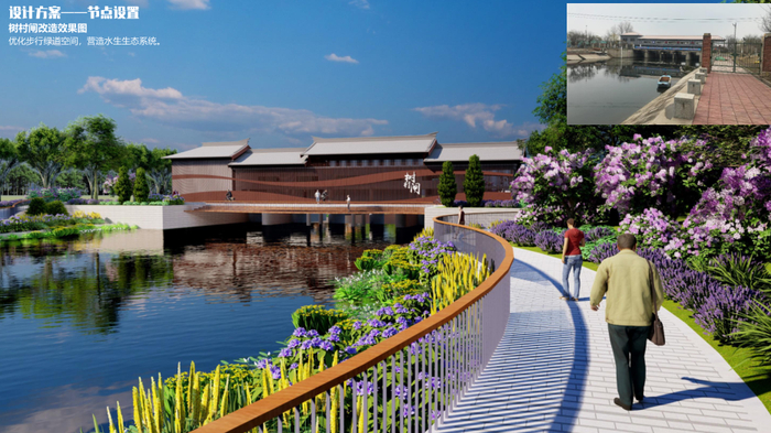 树村闸房将进行全面升级改造,融合三山五园传统文化,参考了圆明园四十景中“曲院风荷”的建筑特征,结合现代建筑材料与工程手段,构建“面水望桥”的布局,还原高低错落、鳞次比节的传统建筑风貌。