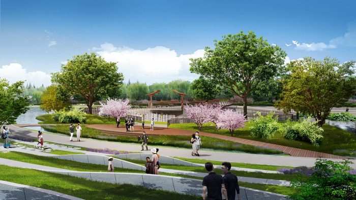 “清河之洲”(树村段)滨水绿廊景观提升工程示意图