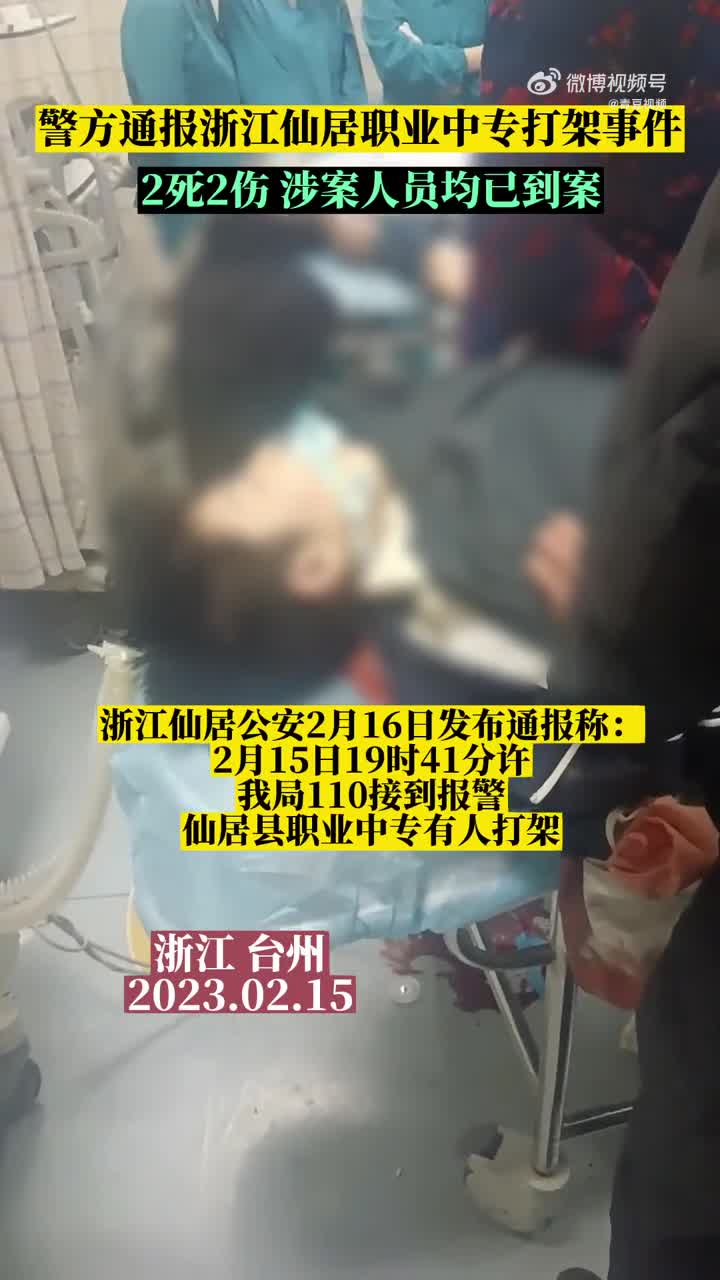 浙江仙居警方:一职业中专有人打架致2死2伤 涉案人员已到案(央视)