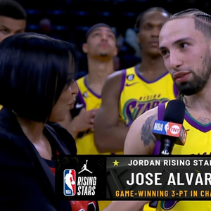 半决赛淘汰德隆队,阿尔瓦拉多便是加索尔队表现最出色的球员,得到全队最高的13分。决赛与诺阿队的较量,状元班切罗发挥全面,但在决定胜负的关键时刻,又是阿尔瓦拉多挺身而出,用一记三分球绝杀帮助球队夺冠。没有太多悬念,阿尔瓦拉多捧起新秀挑战赛MVP奖杯。