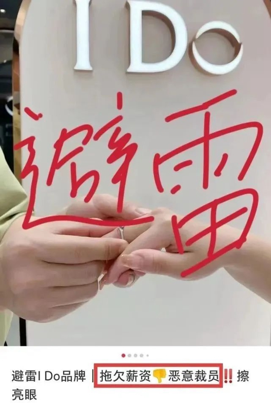 在社交平台上,曾有消费者表示I Do的产品款式少,“一款埃菲尔钻戒卖到底”,还有部分消费者反馈自己在I Do专柜购买的钻戒佩戴不久后便掉钻了。创新款式有限、镶嵌质量不佳等问题,让消费者对品牌的信任度迅速下降。