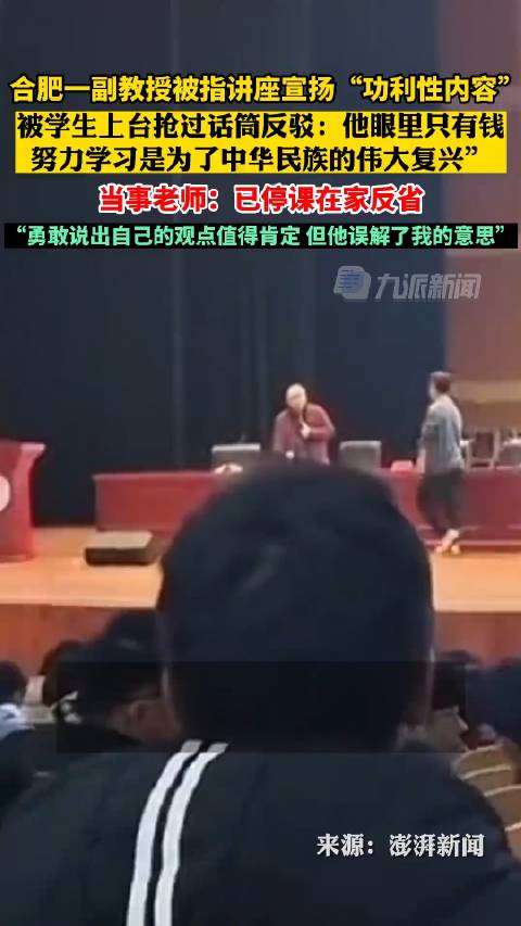 副教授演讲被指宣扬功利性内容,被学生上台抢过话筒反驳:他眼里只有钱