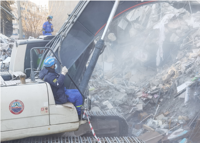 “我登上挖掘机,靠在紧挨驾驶室外的一点空间,帮土耳其司机盯着前方,一旦发现有狭小空间或者被困者,就立马叫停。”潘实成说,看着挖掘机一点一点地“切”着层层叠叠的楼板,“我感觉比司机还紧张,需要集中注意力,生怕错过一点生机。”