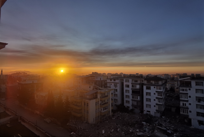 回国的路上,吴珍玉翻看手机相册里的照片,发现一张拍摄于2月15日早7点22分的照片。那是撤离阿德亚曼前的最后一个黎明,吴珍玉举起手机,拍下了窗外的朝阳。虽然眼前的城市千疮百孔,破碎不堪,但灿灿的霞光依旧紧紧将其拥抱。“那一瞬间,我仿佛看到了希望。”