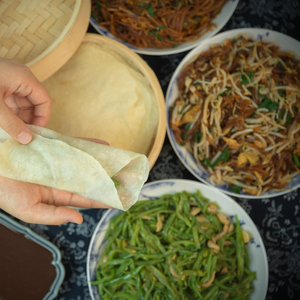 北京地区的二月二美食多与龙有关,以龙来命名。这一天,北京周边会食用春饼,人们称为“吃龙鳞”。食用春饼时,讲究与炒“合菜”搭配,抹上甜面酱,配上大葱,卷起来就可以食用了。这一天,包括北京在内的很多北方地区还流行吃面条、水饺等,将其称为“龙须面”“龙牙”。