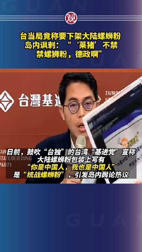 上月初,大陆一螺蛳粉品牌因产品外包装标语写着“你是中国人,我也是中国人,四舍五入一下,你就是我的人”被岛内政客炒作成“统战工具”。当时,鼓吹“台独”的台湾“基进党”台南市议员李宗霖宣称这一标语“统战意味浓厚”,要台当局下架商品、涂销“统战”标语。