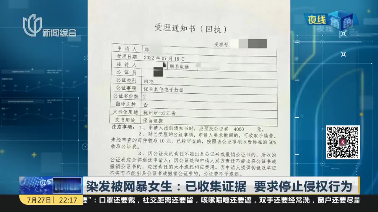 染发被网暴女生:已收集证据 要求停止侵权行为