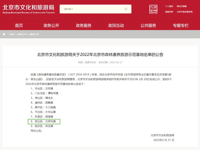 近日,北京市文化和旅游局公示了一批“北京市森林康养旅游示范基地”名单,咱密云太师屯镇榜上有名!