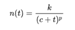 第一个规律被称为大森定律(Omori’s law),日本地震学家大森房吉经过研究提出余震次数会随着时间而快速衰减,这个定律经过修正后的表达如下:
