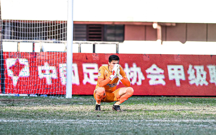 2021年12月30日,中甲联赛附加赛次回合,新疆天山雪豹不敌广西平果哈嘹后降级,门将艾克拉木江很失落。 图/IC photo