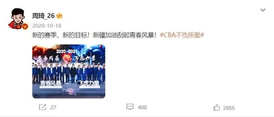 周琦也曾感谢新疆队提供的舞台。