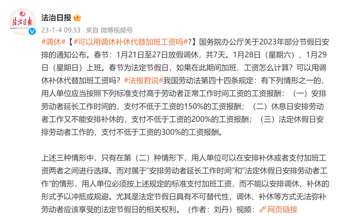 春节放假调休的相关安排冲上热搜第一!加班工资怎么计算?