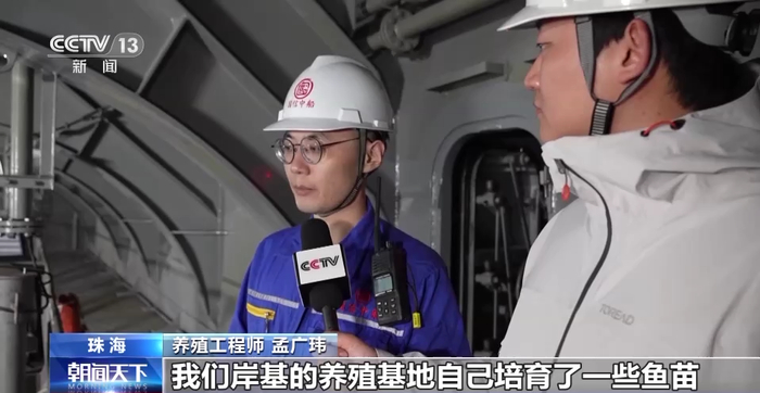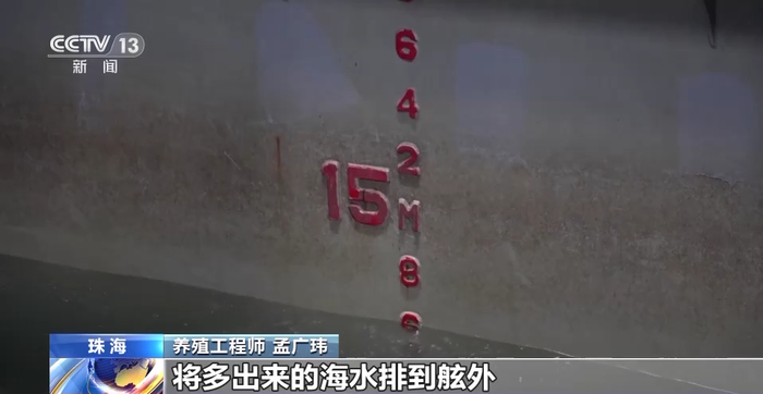 养殖工程师 孟广玮:我们用海水泵不断地向养殖舱内进行注水,将多出来的海水排到舷外,可实现养殖舱24小时不间断地换水,保证水质是新鲜的外海水。