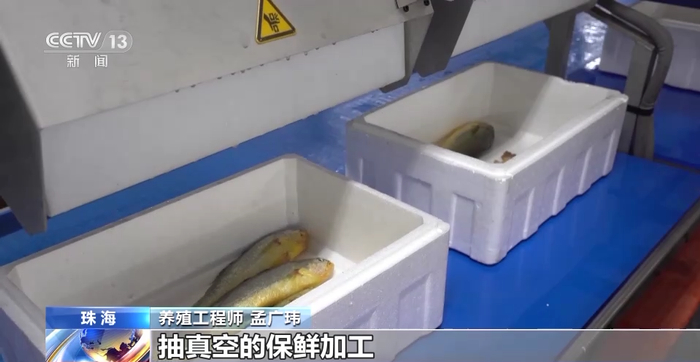 养殖工程师 孟广玮:我们船上有加工车间,可以选择在船上直接进行抽真空的保鲜加工,也可以进入速冻隧道进行冷冻鱼的加工,或者是用冰浆把它封存之后转运到加工厂进行深加工。