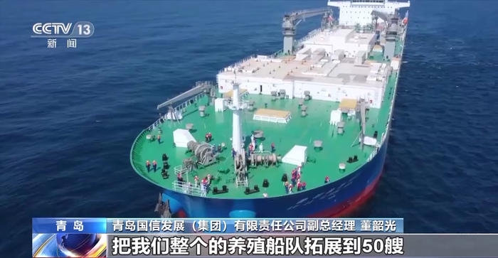 青岛国信发展(集团)有限责任公司副总经理 董韶光:我们计划用5到10年时间,投入350亿左右,把我们整个养殖船队拓展到50艘,每年的年产值应该是在500亿元以上,是世界领先的养殖船队。
