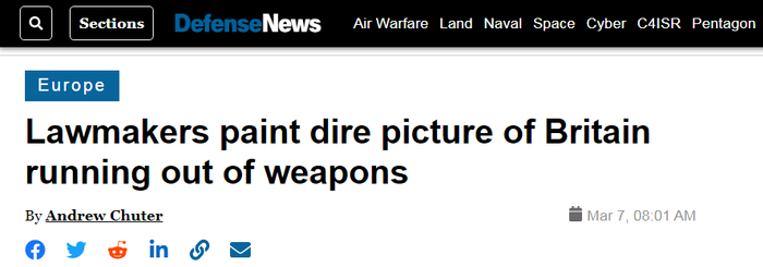 然而补充英国军队的武器库存并不容易。由于通货膨胀和英镑疲软,英国增加国防开支的努力受到极大争议。此外,英军装备的补充难度大,并非只是缺钱的问题,还与英国产业多年来空心化的现状有关,这也不是英国政府短期内就能解决的。