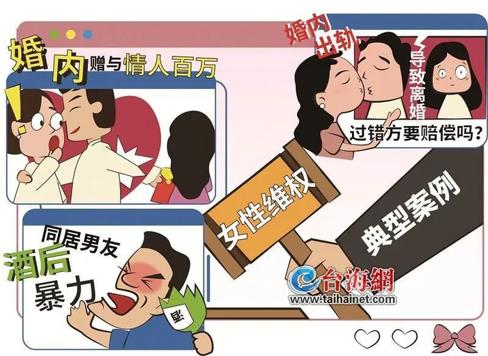 丈夫婚内赠与情人百万,妻子如何维权;同居男友酒后暴力,她该怎么办;婚内出轨导致离婚,她能索赔吗……