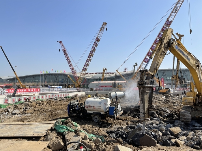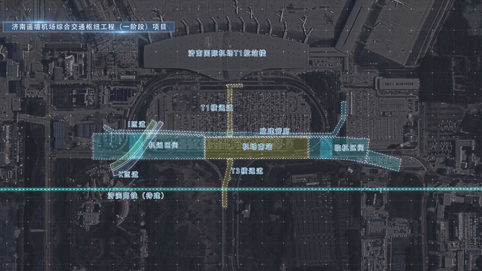 济南机场二期改扩建综合交通枢纽工程(一阶段)位于T1航站楼西侧,施工现场距离航站楼水平距离仅85米,施工周期730天,包含地铁工程、高架桥工程、管廊工程、人防工程、道路工程及管线迁改工程。
