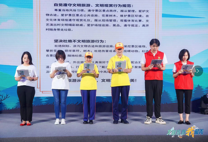 此外,为有效提升市民文明旅游素质,营造首都良好的旅游环境,2022年8月18日,首都文明办联合市文旅局、市政府外办、市公园管理中心举行“文明旅游我最美”主题宣传推进会。活动现场,文明游客、景区代表和“柠檬黄”等共同呼吁并“承诺”:自觉遵守文明旅游、文明观赏行为规范,坚决杜绝不文明旅游行为。