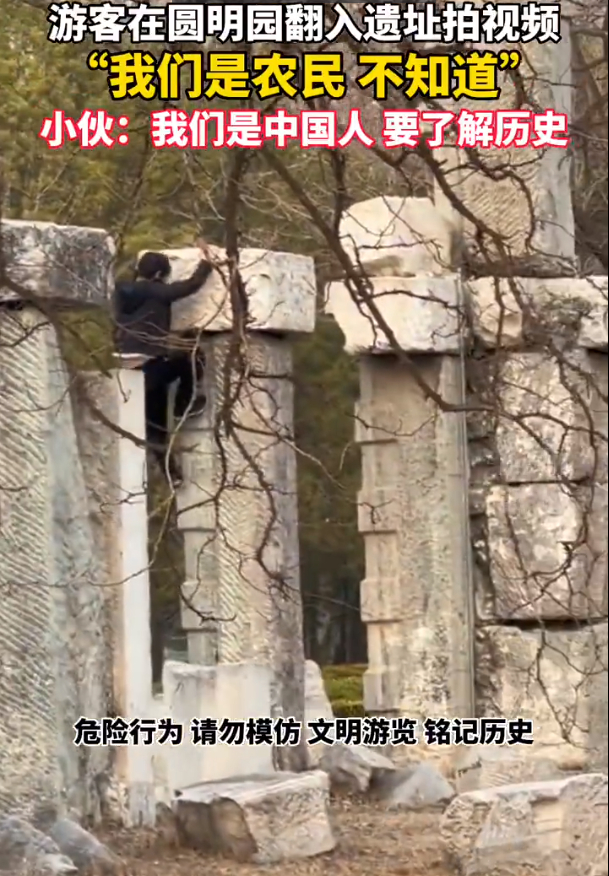 游客在圆明园攀爬遗址被查获,旅游不文明行为几时休?