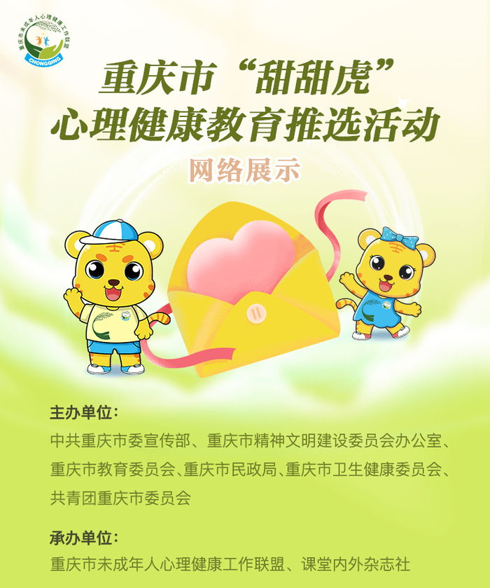 3月13日,重庆市“甜甜虎”心理健康教育推选活动网络展示正式开启。